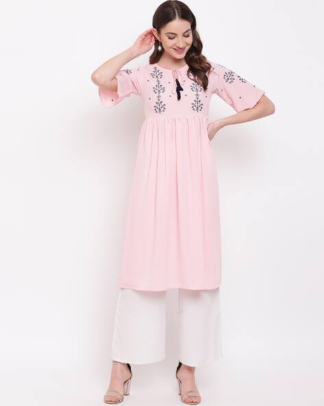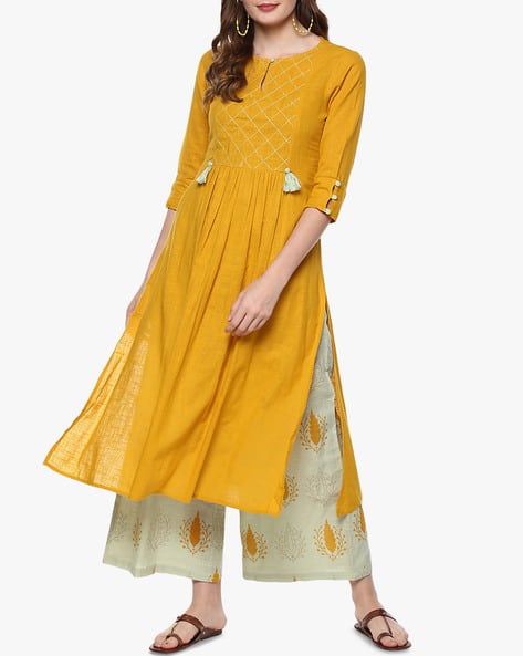 1) IDALIA Embroidered A-line Kurta with Printed Palazzos for Rs 1,280 3199 (60% Off)