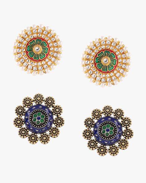 1) ZAVERI PEARLS Pack of 2 Traditional Pearl & Carving Work Drop Earrings-ZPFK9042 Rs. 499 Rs. 1,997 (75% off)