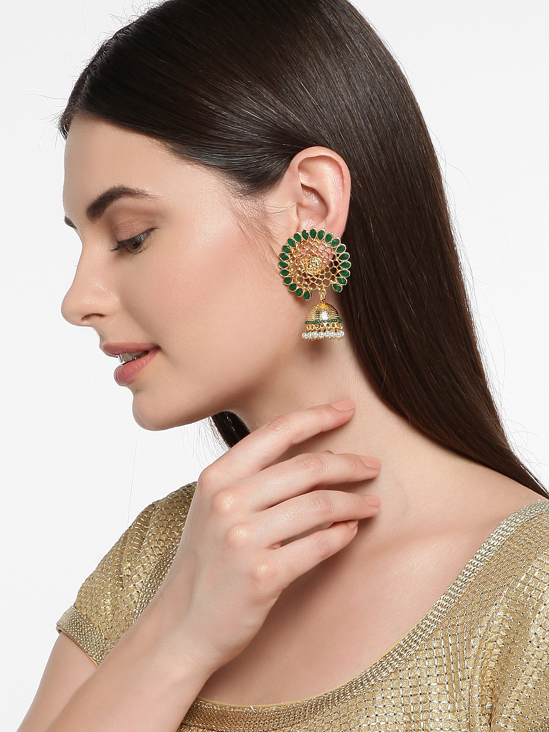 5) ZAVERI PEARLS Set of 2 Traditional Kundan-Embellished Jhumkas - ZPFK9038 Rs. 519 Rs. 1,997 (74% off)