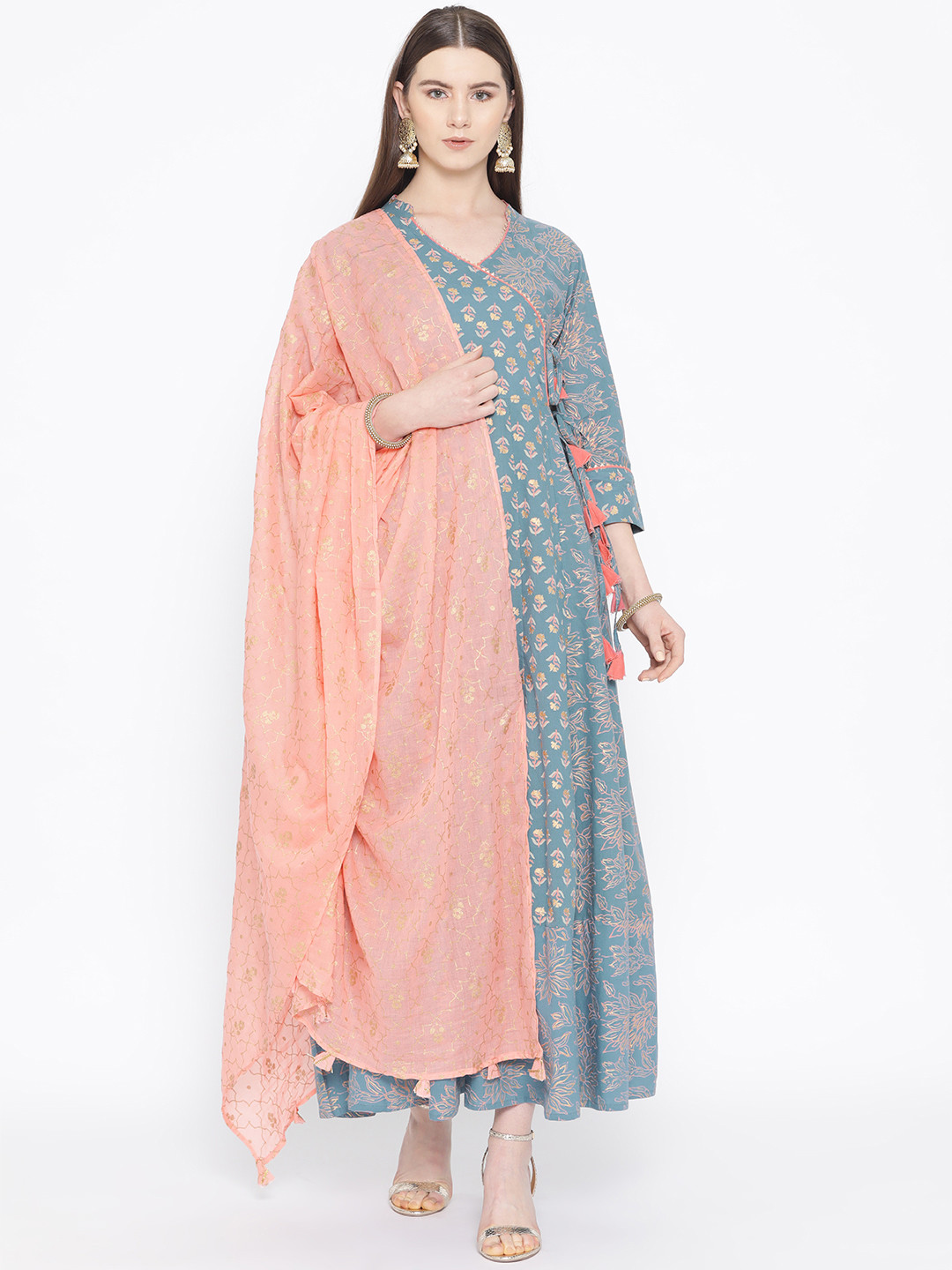 5) TARA-C-TARA Women Blue & Pink Printed Angrakha Maxi Dress with Dupatta Rs. 1599 Rs. 3199(50% OFF)