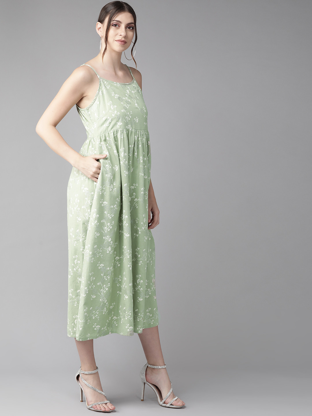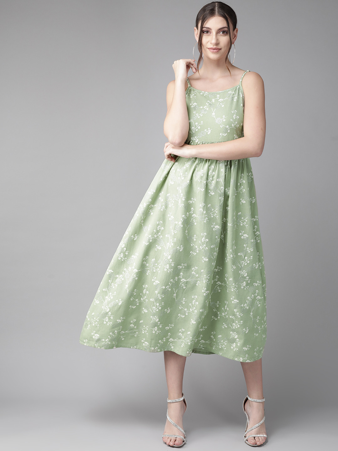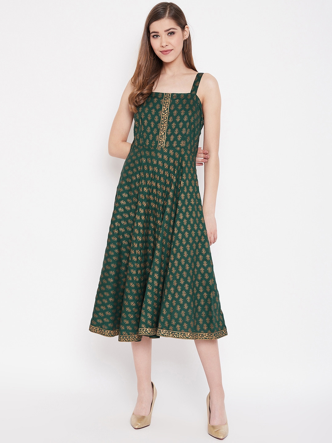 6) AKS Women Green & White Khari Print A-Line Dress Rs. 769 Rs. 1099(30 % OFF)