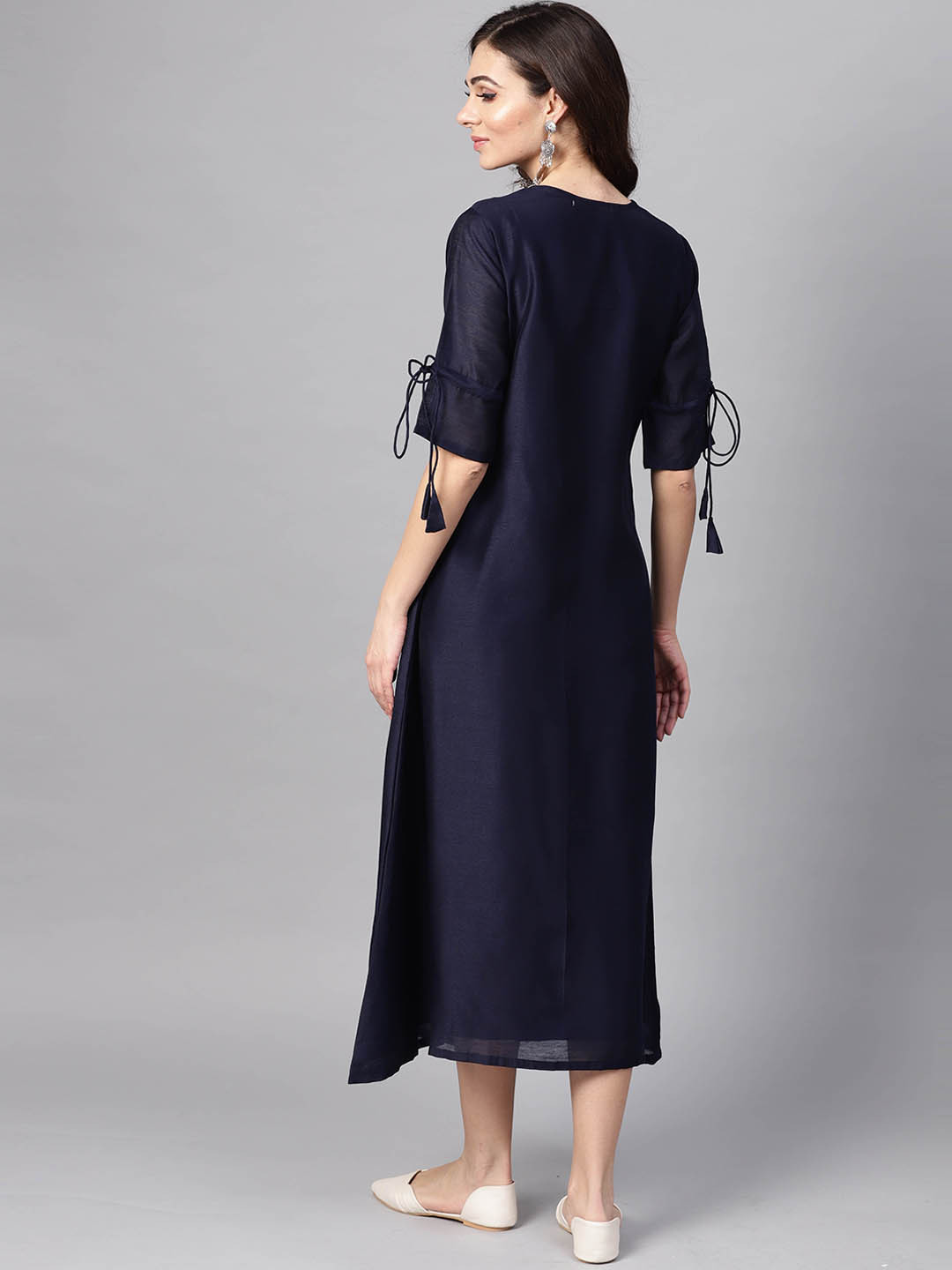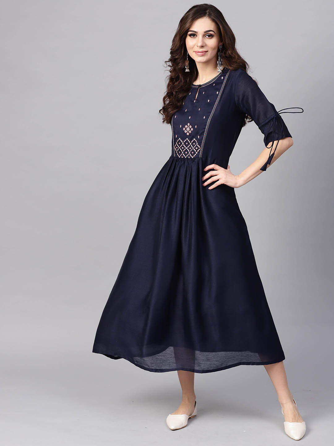 7) Indo Era Women Blue Solid Fit and Flare Dress Rs. 1259 Rs. 2999(58% OFF)